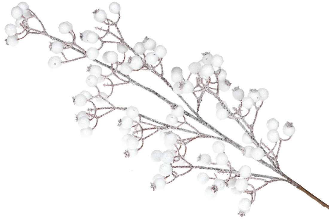 Декоративна гілка з ягодами в інею 73см, колір - білий