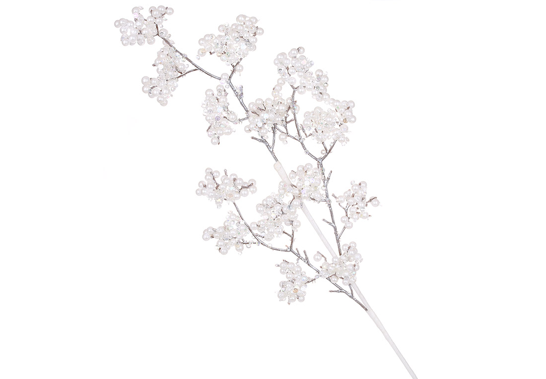 Декоративна гілка з ягодами в паєтках 60см, колір - білий перламутр