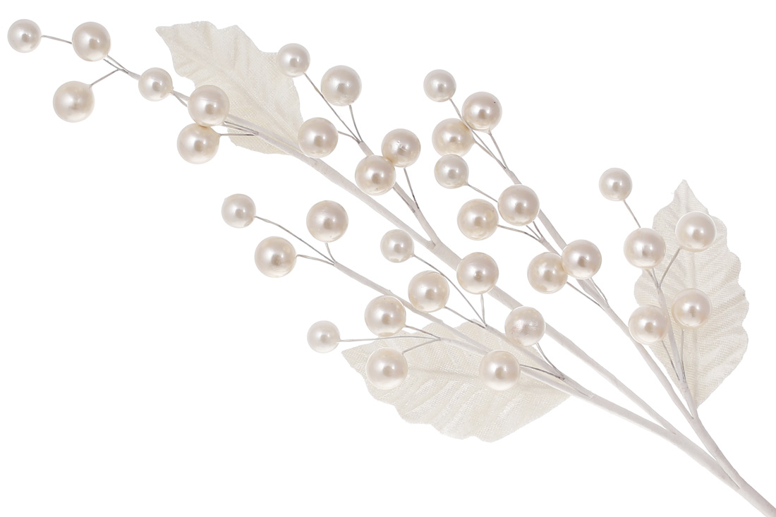 Декоративна гілка із перлинними ягодами 58см, колір - білий перламутр