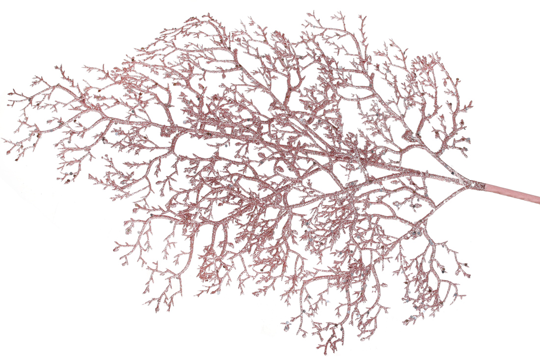 Декоративна гілка в гліттері Корал 74см, колір - рожевий