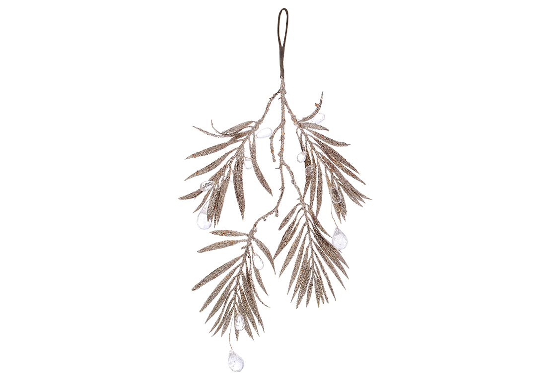 Декоративна гілка в гліттері з акриловими краплями 40см, колір - шампань із прозорим.