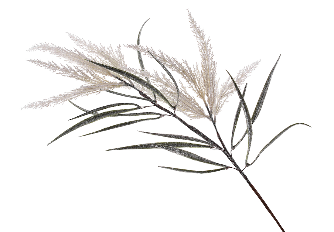 Декоративна гілка в інеї 72см, колір - зелений з білим