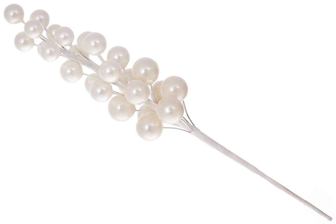 Декоративна гілка Виноград 19см, колір - білий перламутр