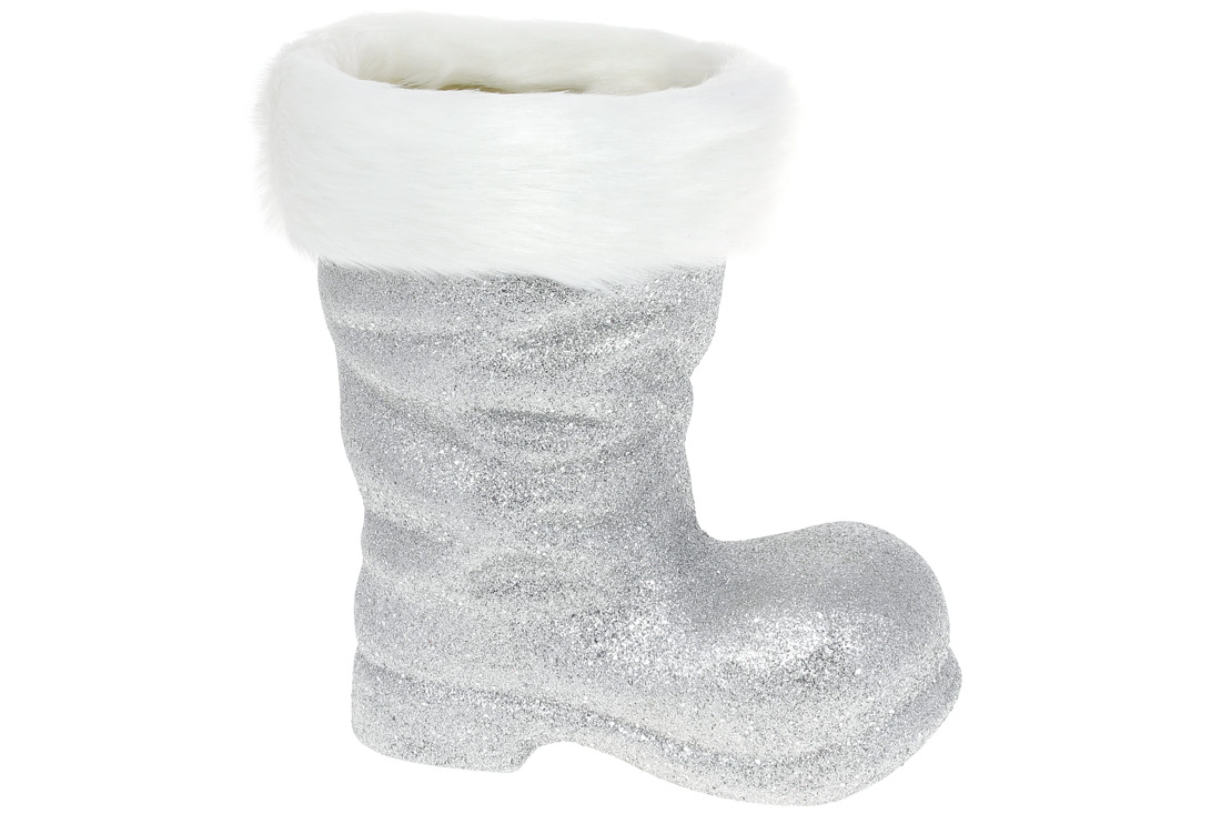 Декоративне кашпо Чобіток 25см, колір - срібний гліттер