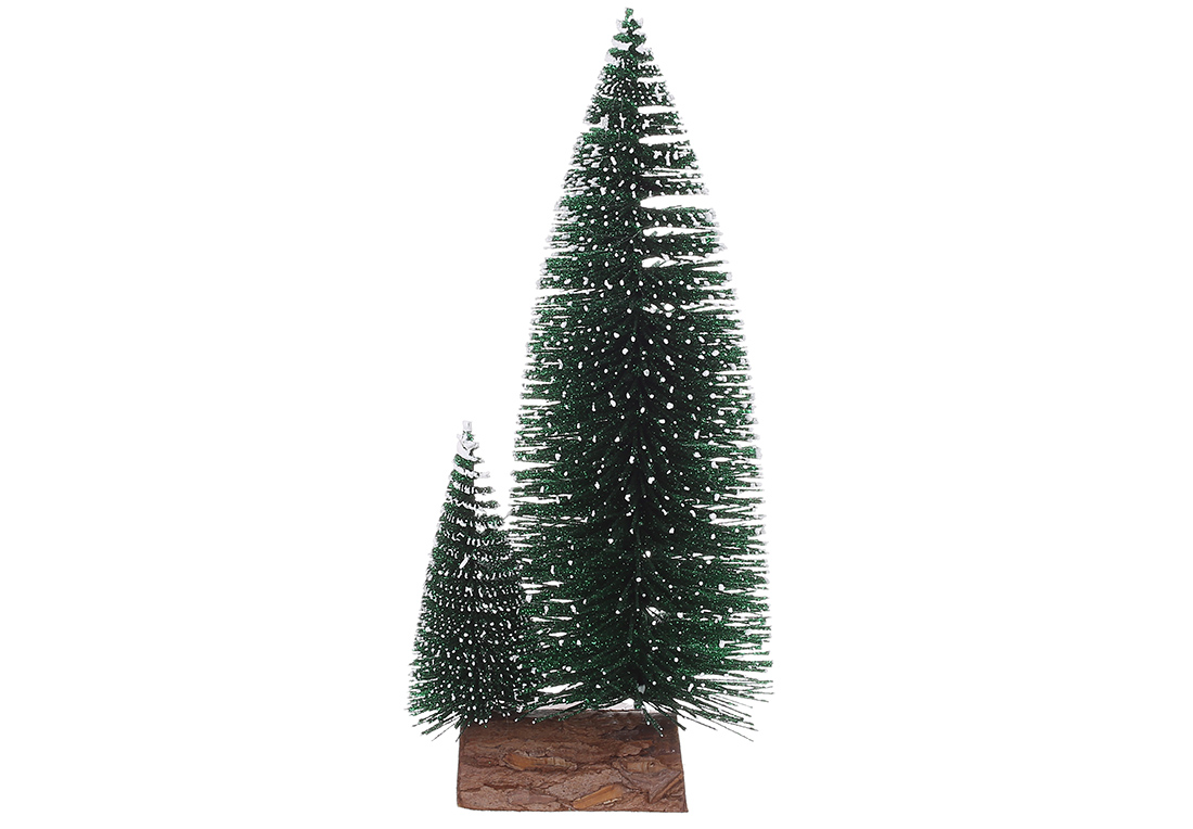 Декоративні Ялинки на дерев'яній підставці, 10*22см, колір - зелений глітер з білим