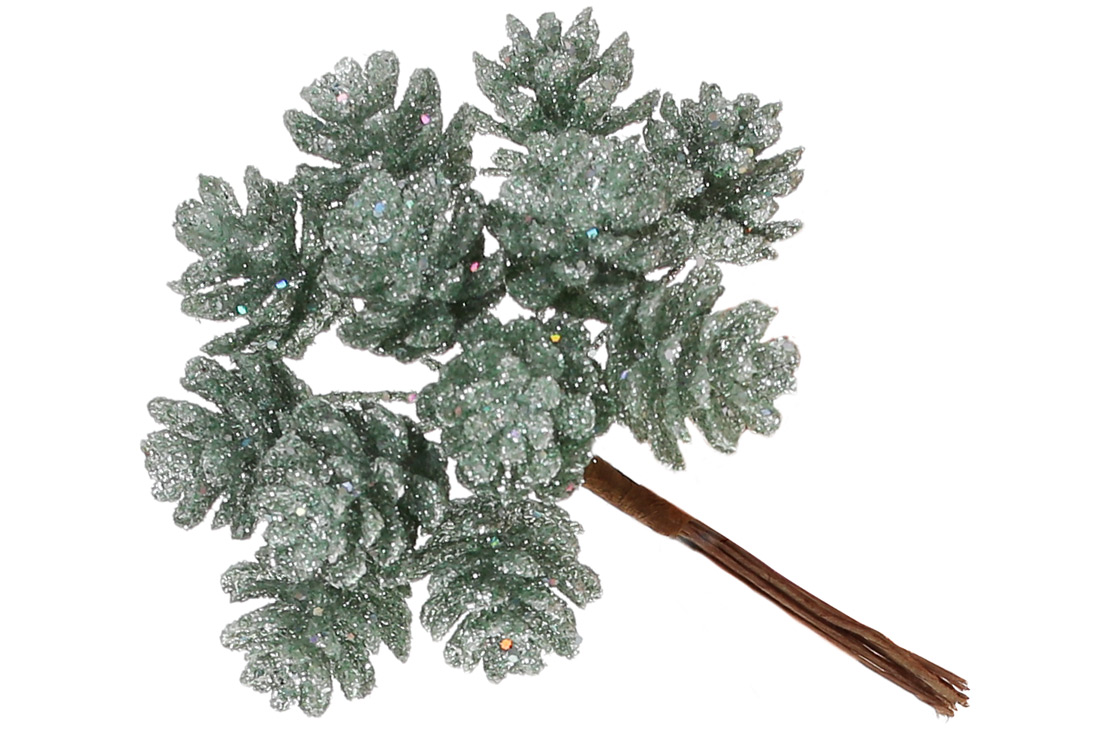 Декоративні міні-шишки 12шт у пучку, 12см, колір - евкаліпт