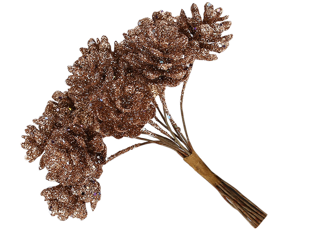 Декоративні міні-шишки 12шт в пучку, 12см, колір - коричневий мокко