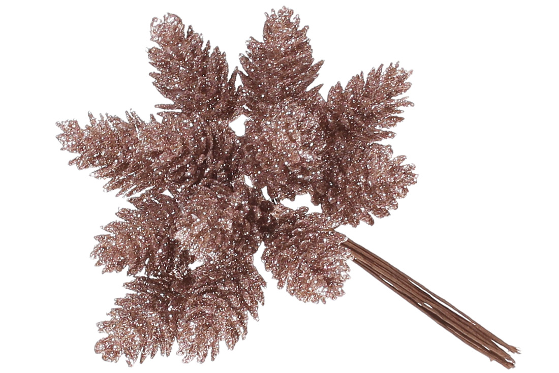 Декоративні міні-шишки 12шт в пучку, 12см, колір - рожево-бежевий