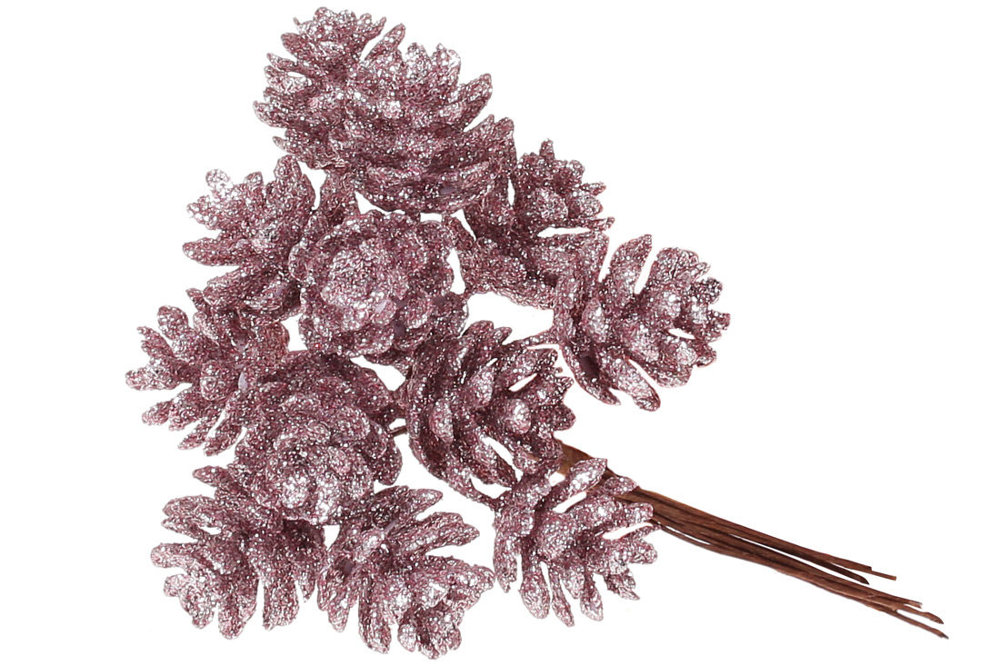 Декоративні міні-шишки 12шт в пучку, 12см, колір - рожевий