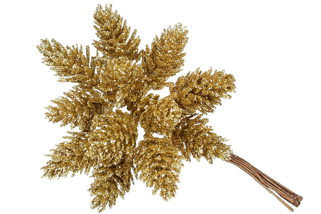 Декоративні міні-шишки 12шт у пучку, 12см, колір - золото