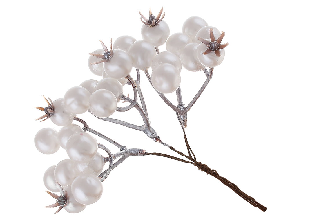 Декоративні перламутрові ягоди комбіновані в пучку, 13см, колір перлинно-білий
