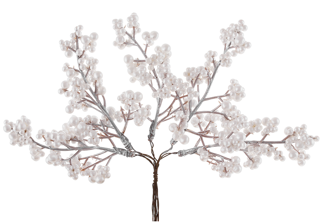 Декоративні перламутрові ягоди в пучку, 19см, колір перлинно-білий