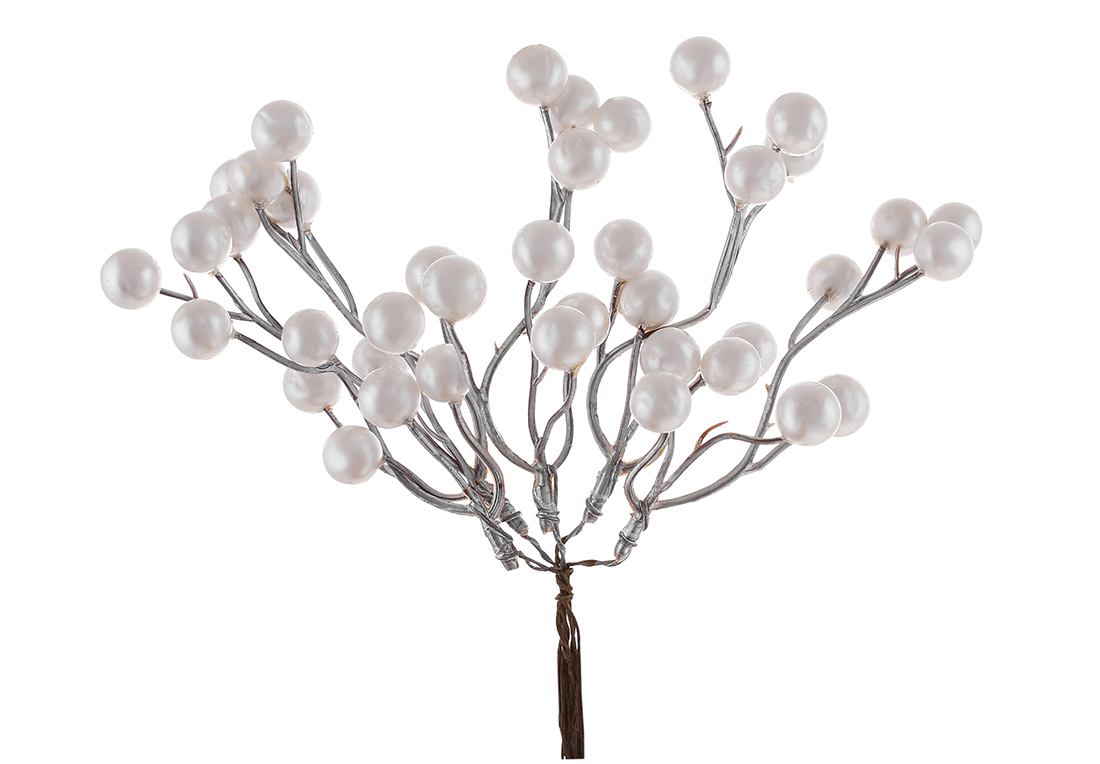 Декоративні перламутрові ягоди в пучку, 19см, колір перлинно-білий