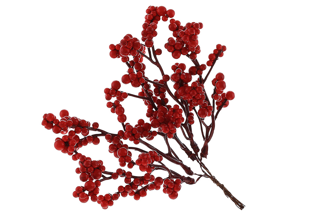 Декоративні перламутрові ягоди в пучку, 20см, колір - червоний