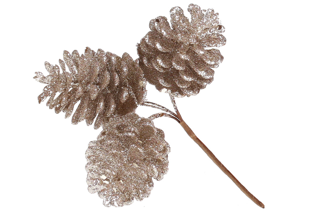 Декоративні шишки, пучок 3 шт, 13см, колір - шампань