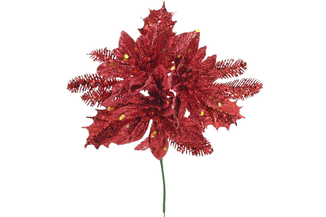 Декоративний букет Пуансетія 17.5см, колір - червоний
