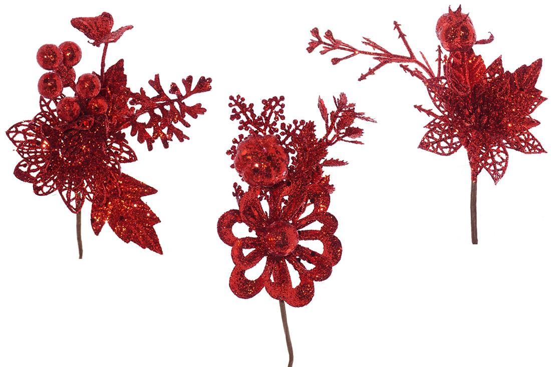 Декоративний букетик, 11см, колір - червоний гліттер, 3 дизайни