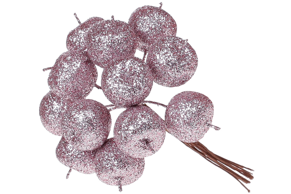 Декоративний букетик яблук 12шт, 11см, колір - рожевий