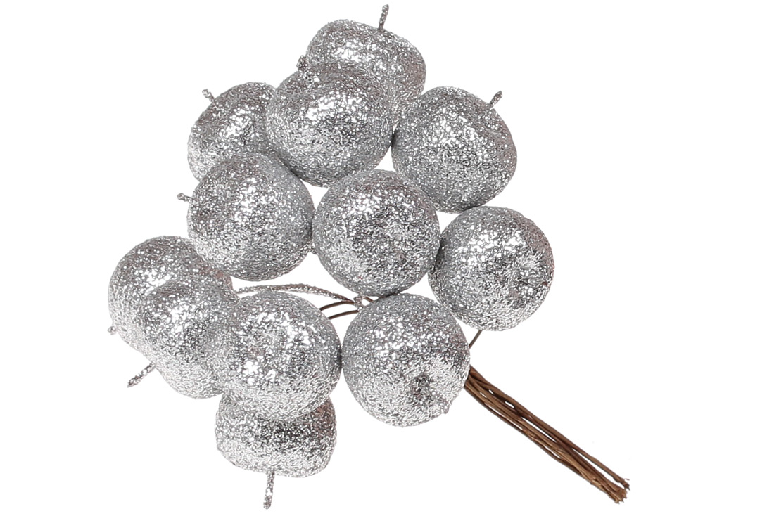 Декоративний букетик яблук 12шт, 11см, колір - срібло