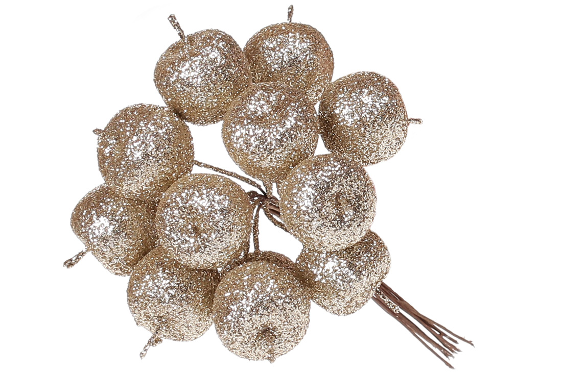 Декоративний букетик яблук 12шт, 11см, колір - шампань