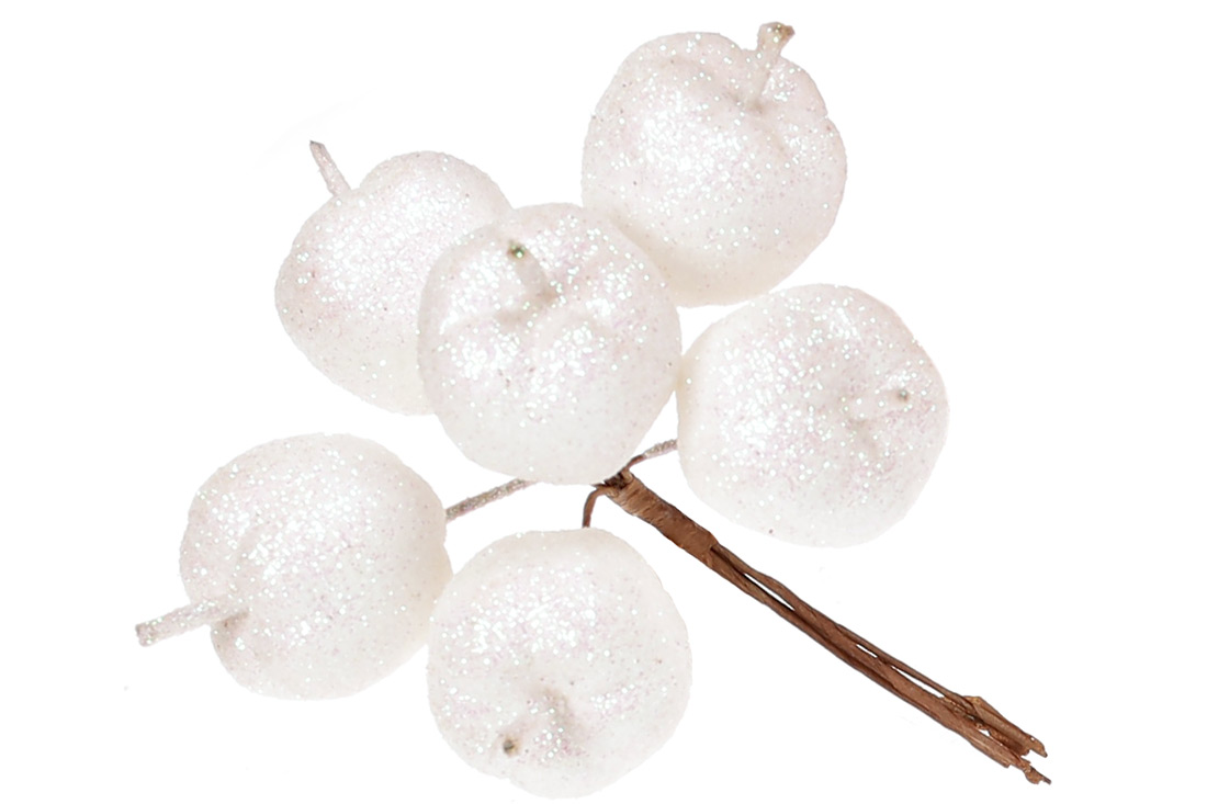 Декоративний букетик яблук 6шт, 12см, колір - білий