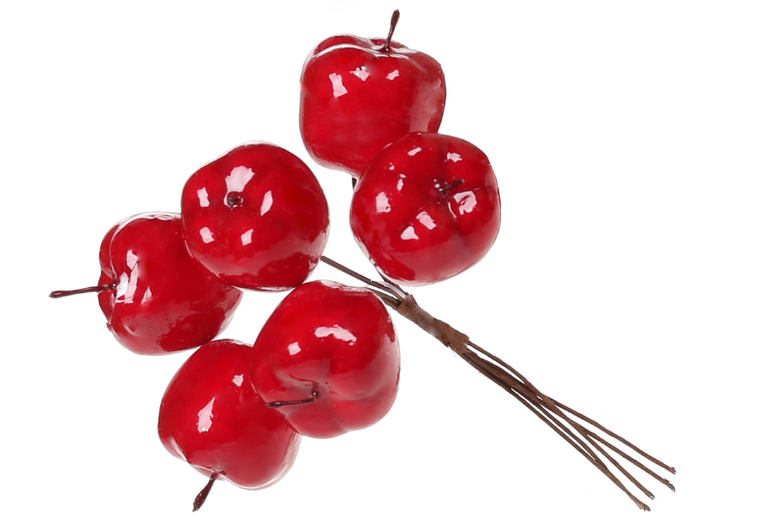 Декоративний букетик яблук 6шт, 12см, колір - червоний глянець