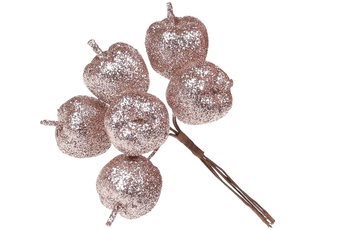 Декоративний букетик яблук 6шт, 12см, колір - персик