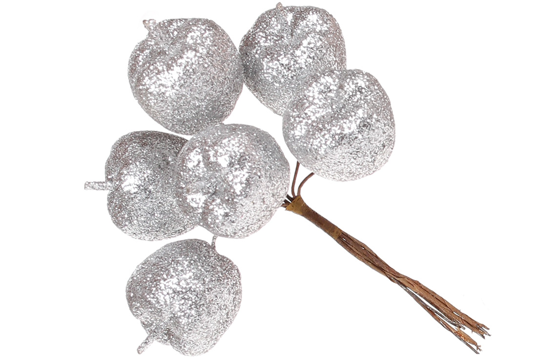 Декоративний букетик яблук 6шт, 12см, колір - срібло
