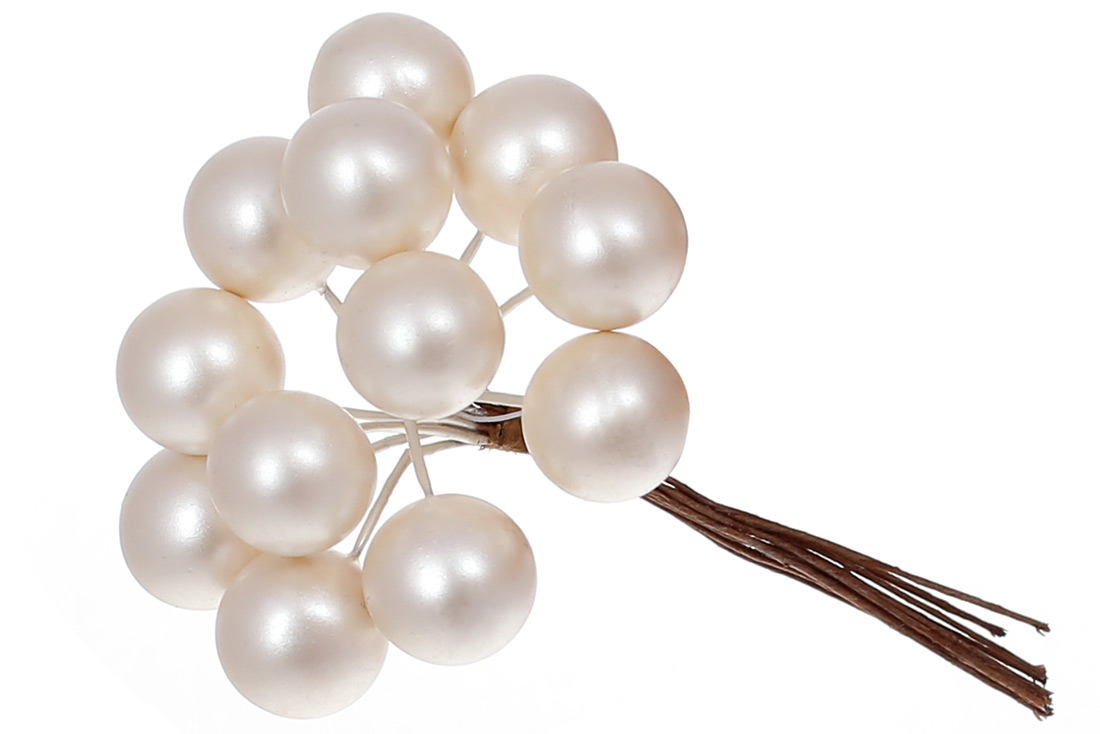 Декоративний букетик ягід 12шт, 11см, колір - білий перламутр