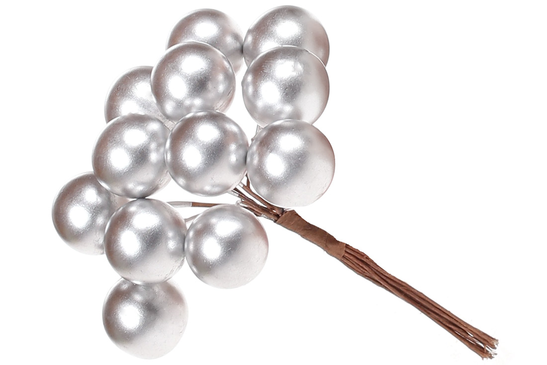 Декоративний букетик ягід 12шт, 11см, колір - матове срібло