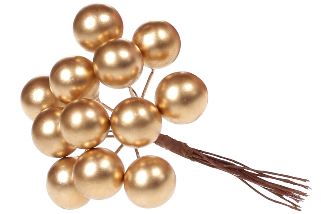 Декоративний букетик ягід 12шт, 11см, колір - матове золото