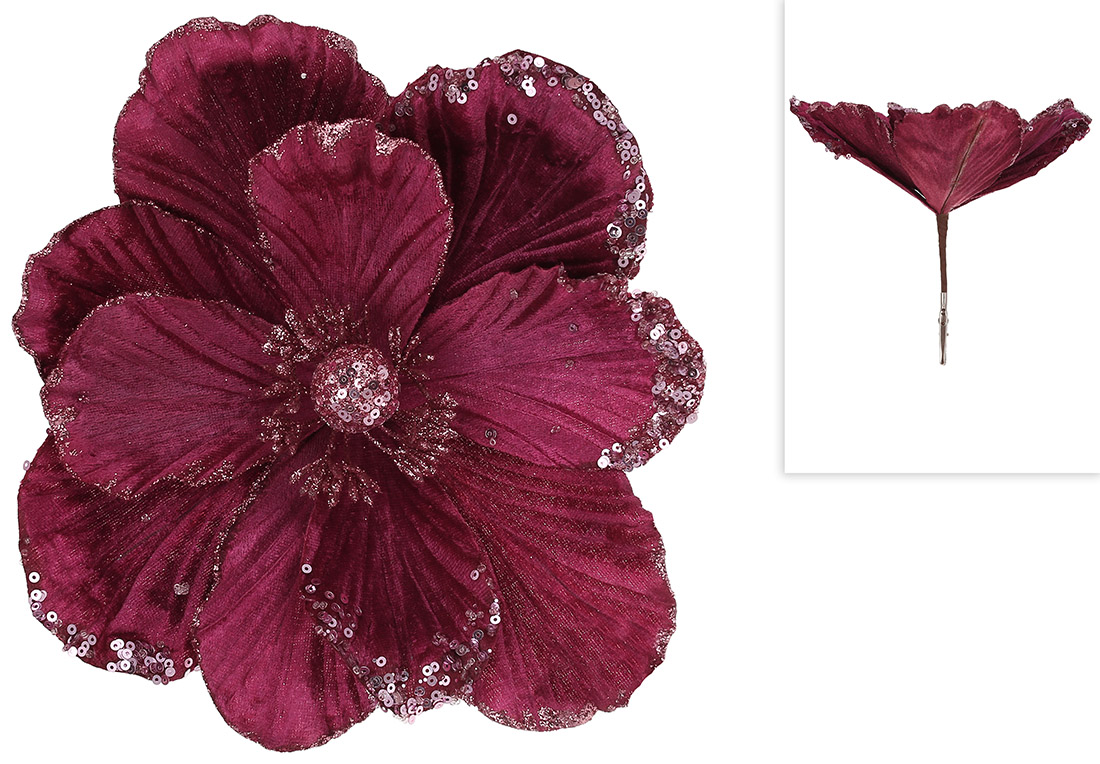 Декоративна квітка Камелія 24см на кліпсі, колір - малиновий