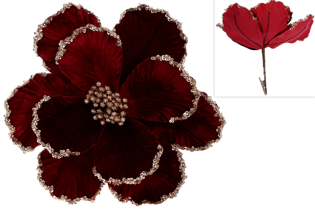 Декоративна квітка Камелія 25см на кліпсі, колір - бордо.