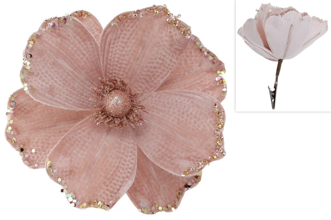 Декоративна квітка Магнолія 17см на кліпсі, колір - рожева пудра