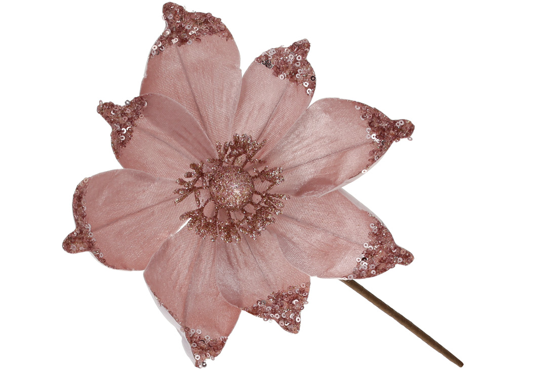 Декоративна квітка Магнолія 20см, довжина ніжки 35см, колір - рожева пудра