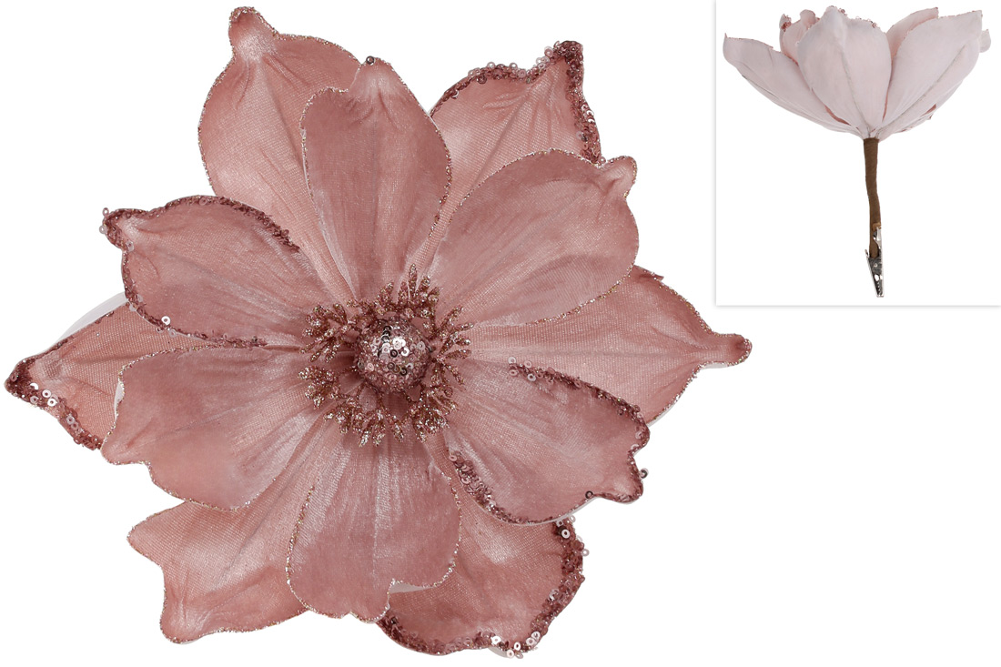Декоративна квітка Магнолія 20см на кліпсі, колір - рожева пудра