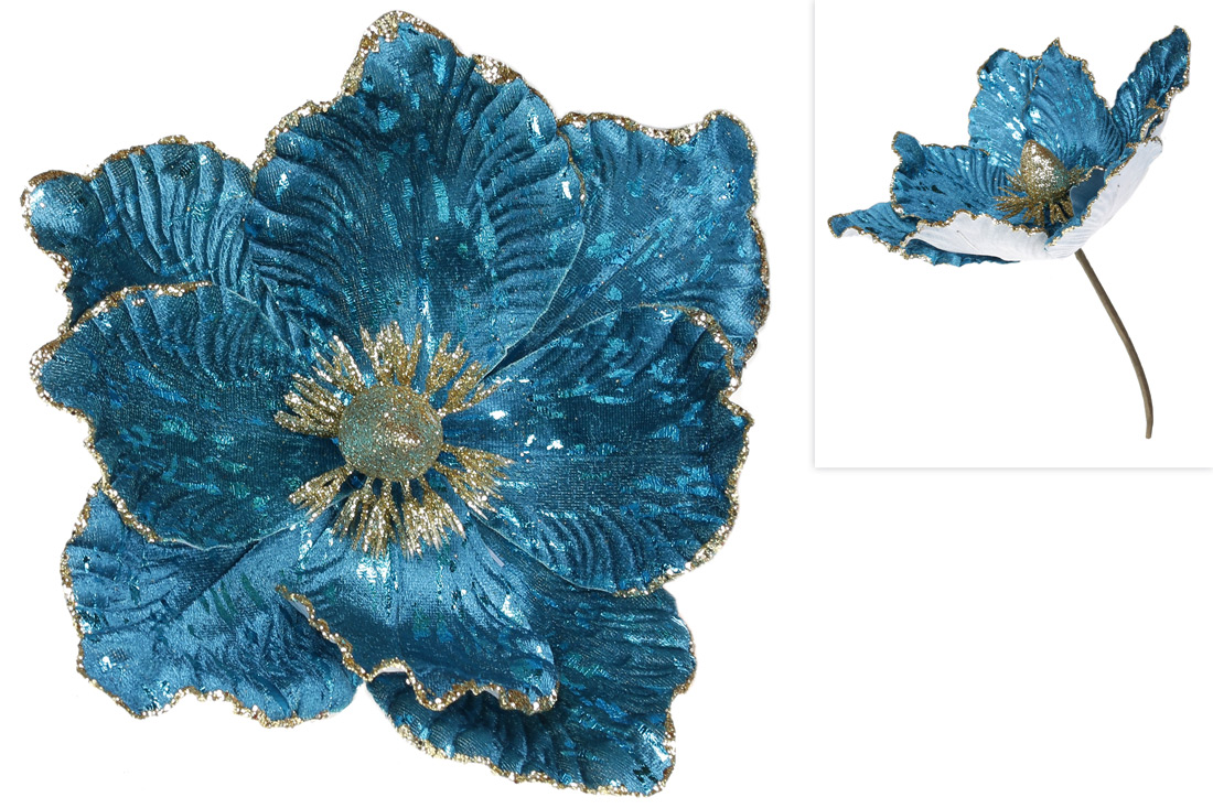 Декоративна квітка Магнолія 24см, колір - бірюзовий оксамит із золотом