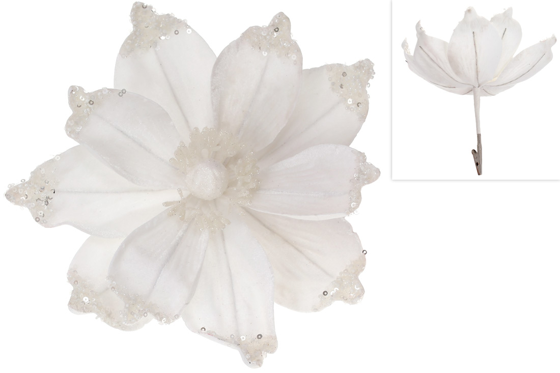 Декоративна квітка Магнолія 24см на кліпсі, колір - білий