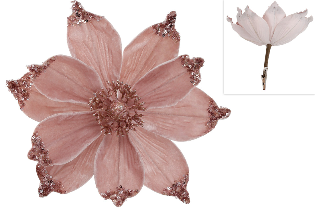 Декоративна квітка Магнолія 24см на кліпсі, колір - рожева пудра
