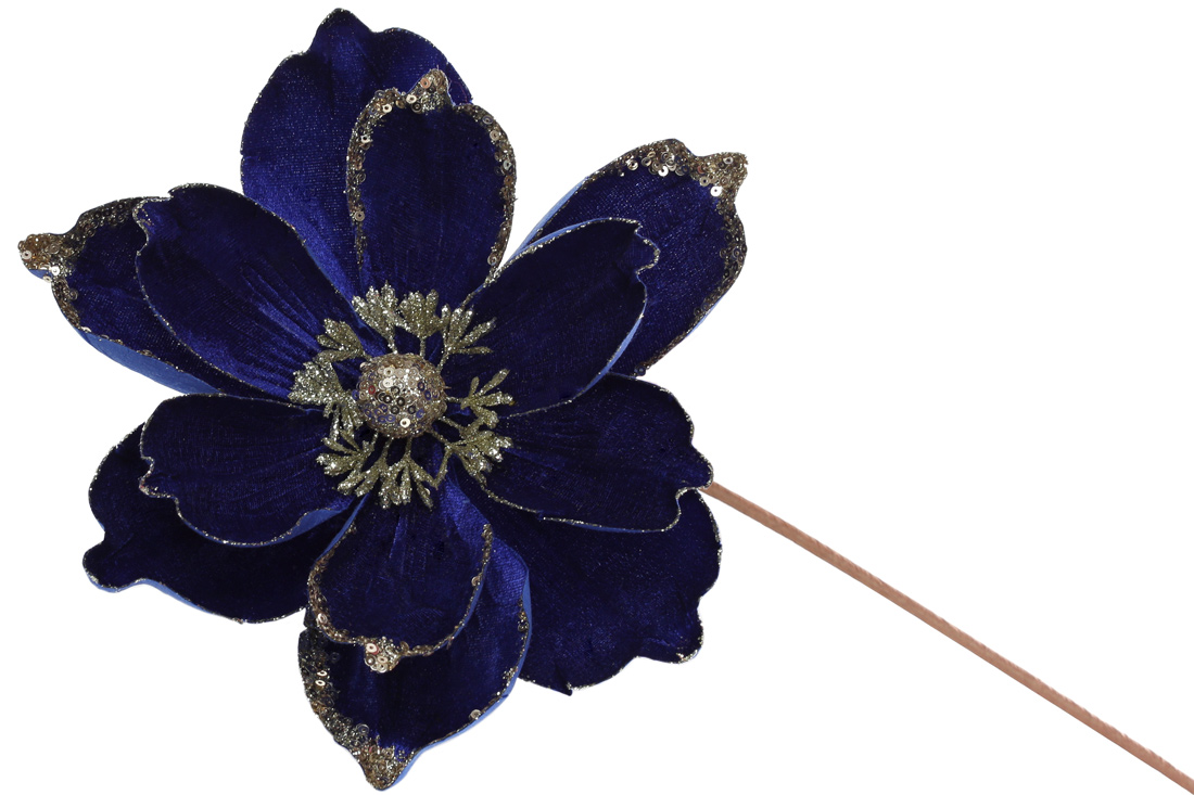 Декоративна квітка Магнолія 50см, колір - королівський синій з шампань.