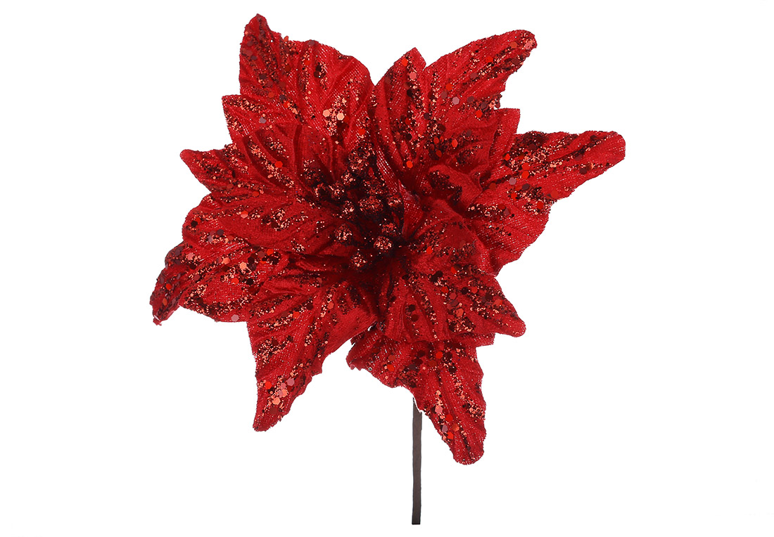 Декоративна квітка Пуансетія 25см, колір - червоний