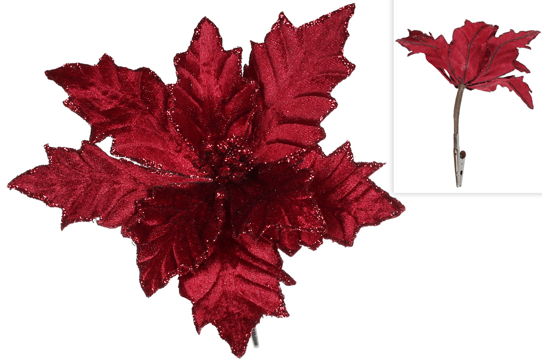 Декоративна квітка Пуансетія 18см на кліпсі, колір - бургунді