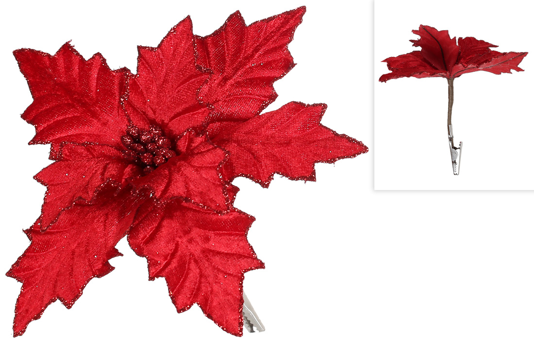 Декоративна квітка Пуансетія 18см на кліпсі, колір - червоний