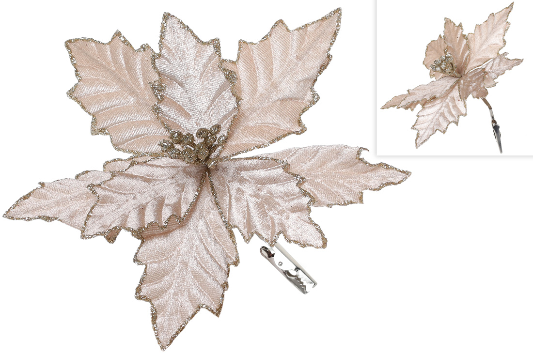 Декоративна квітка Пуансетія 18см на кліпсі, колір - шампань