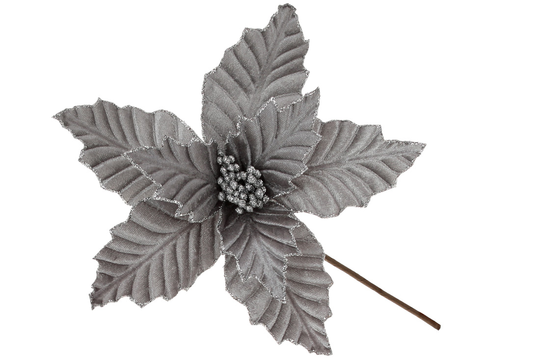 Декоративна квітка Пуансетія 24см, колір - сріблясто-сірий