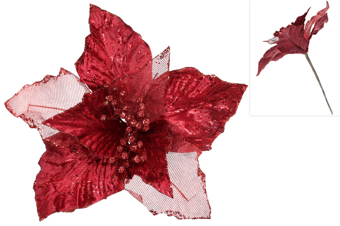 Декоративна квітка Пуансетія 27см, колір - червоний оксамит