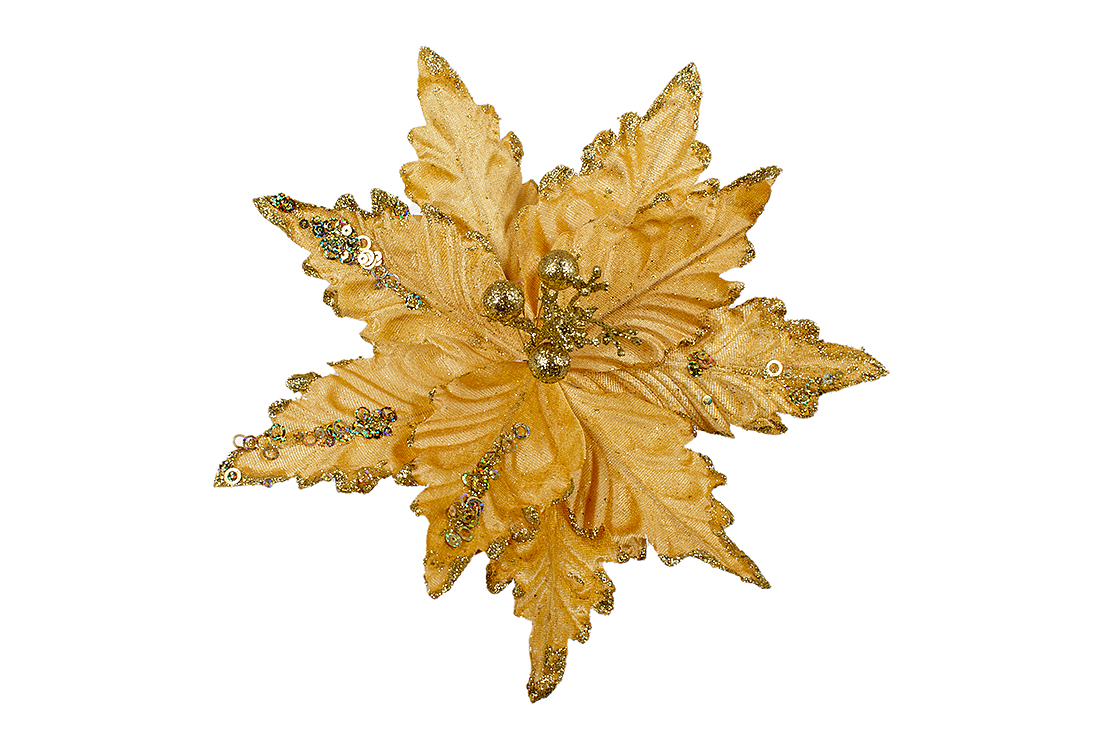 Декоративна квітка Пуансетія 27см, колір - золото