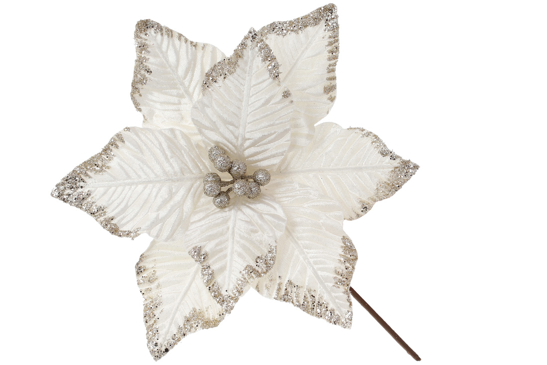 Декоративна квітка Пуансетія 29см, колір - білий з шампанню