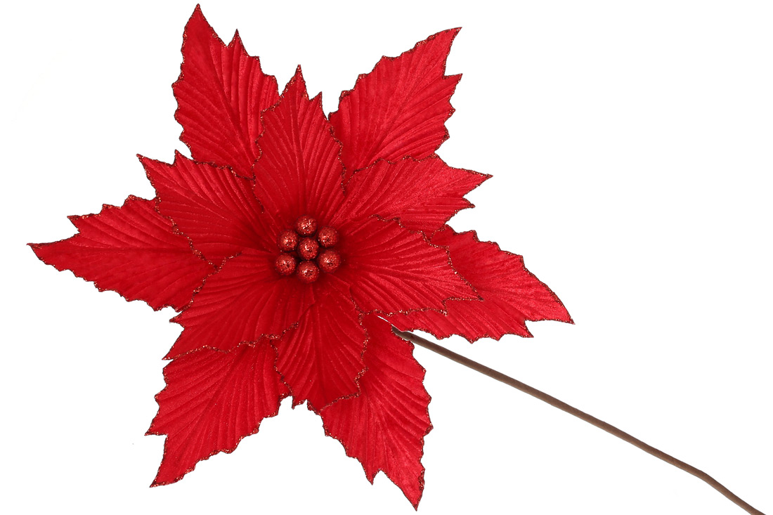 Декоративна квітка Пуансетія 29см, довжина ніжки 50см, колір - червоний