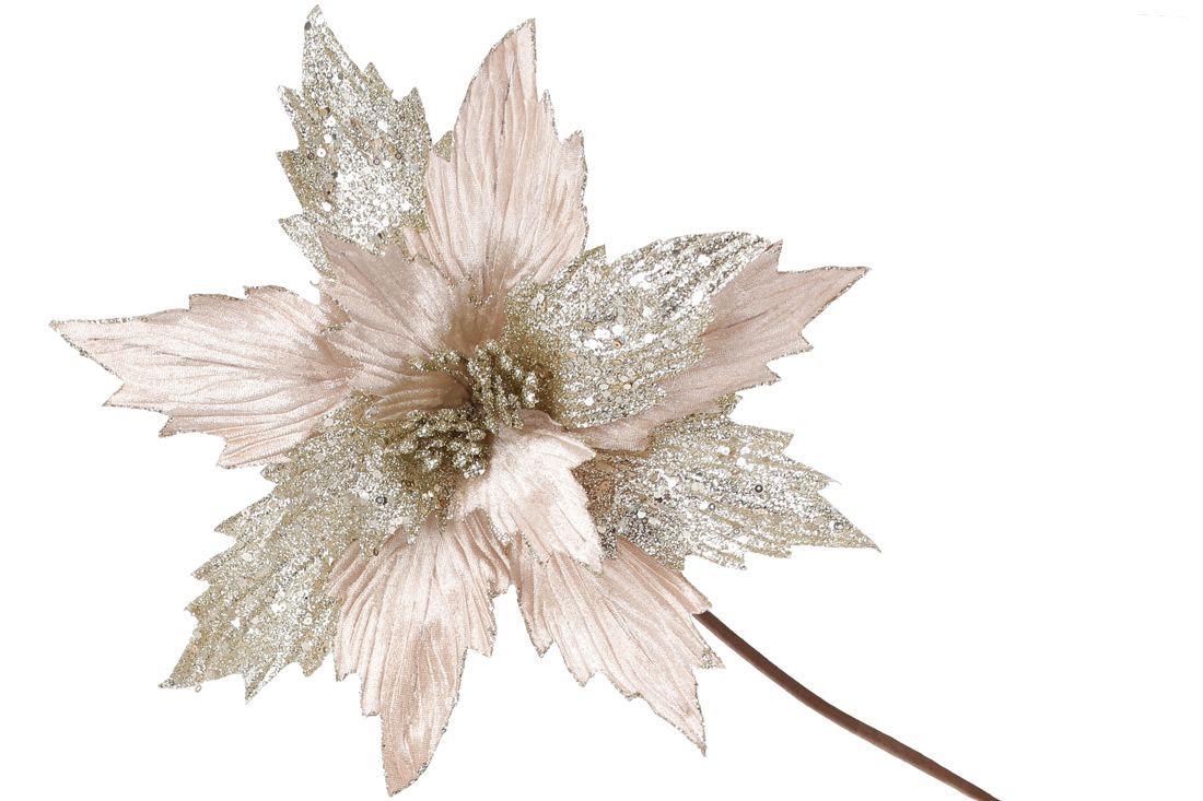 Декоративна квітка Пуансетія 29см, довжина ніжки 50см, колір - крем-шампань